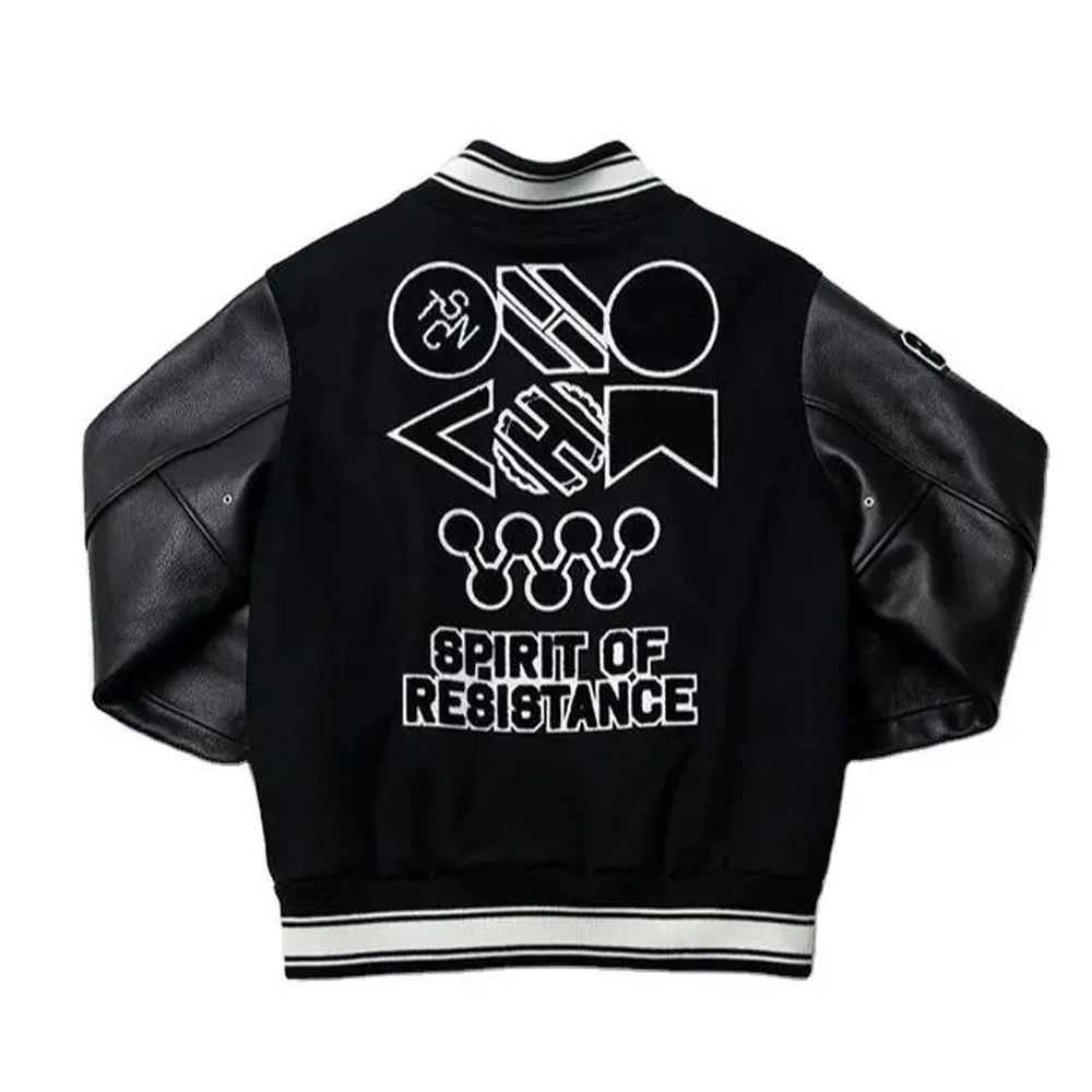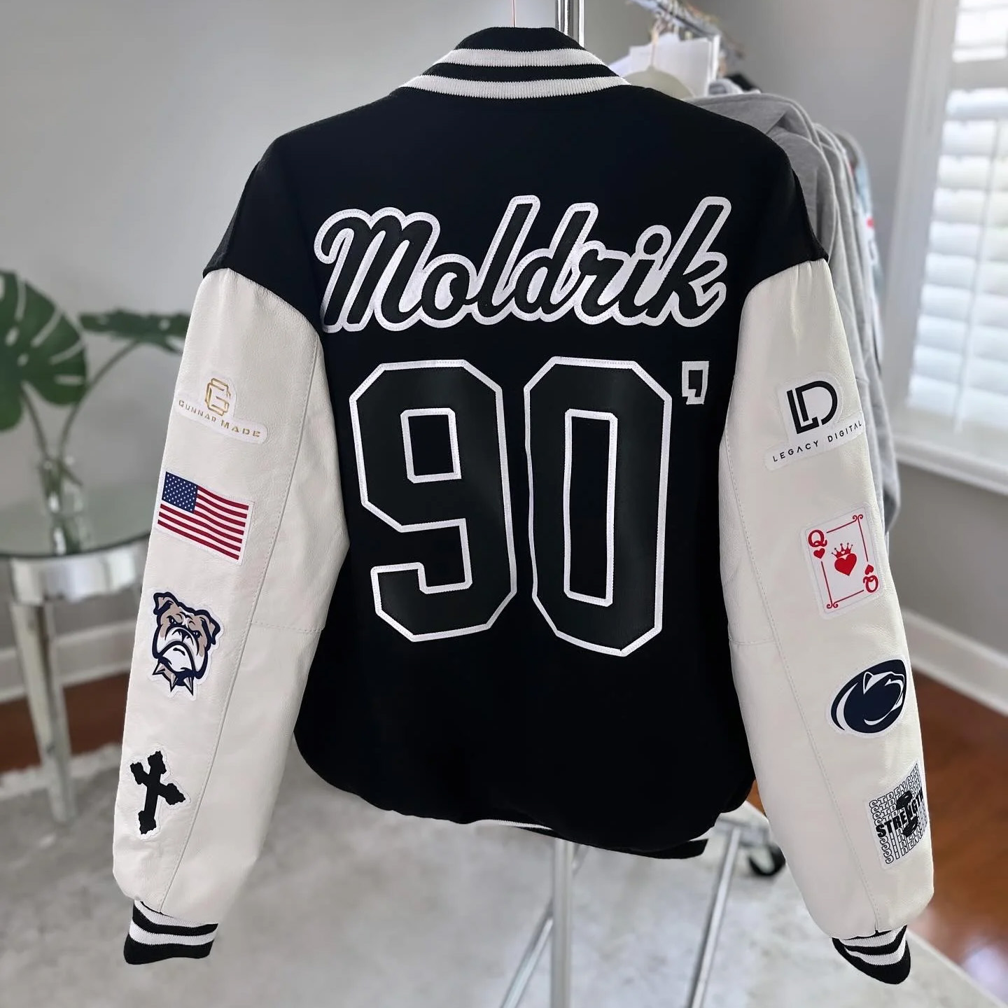 Fully customizable leather jacket with personal artwork, text, and color options.